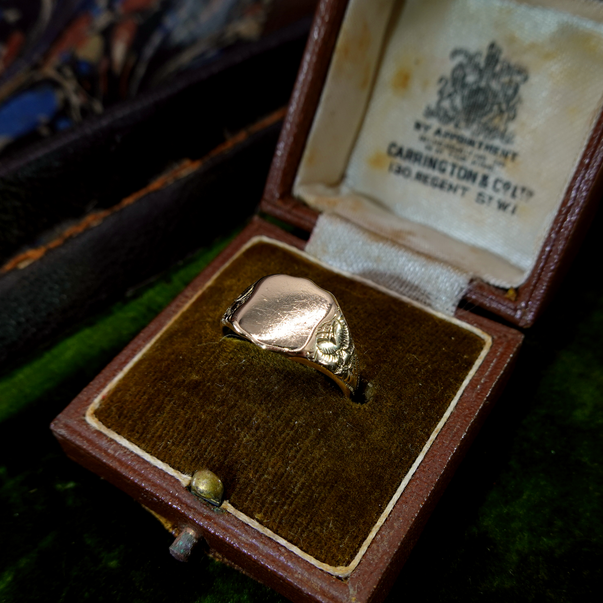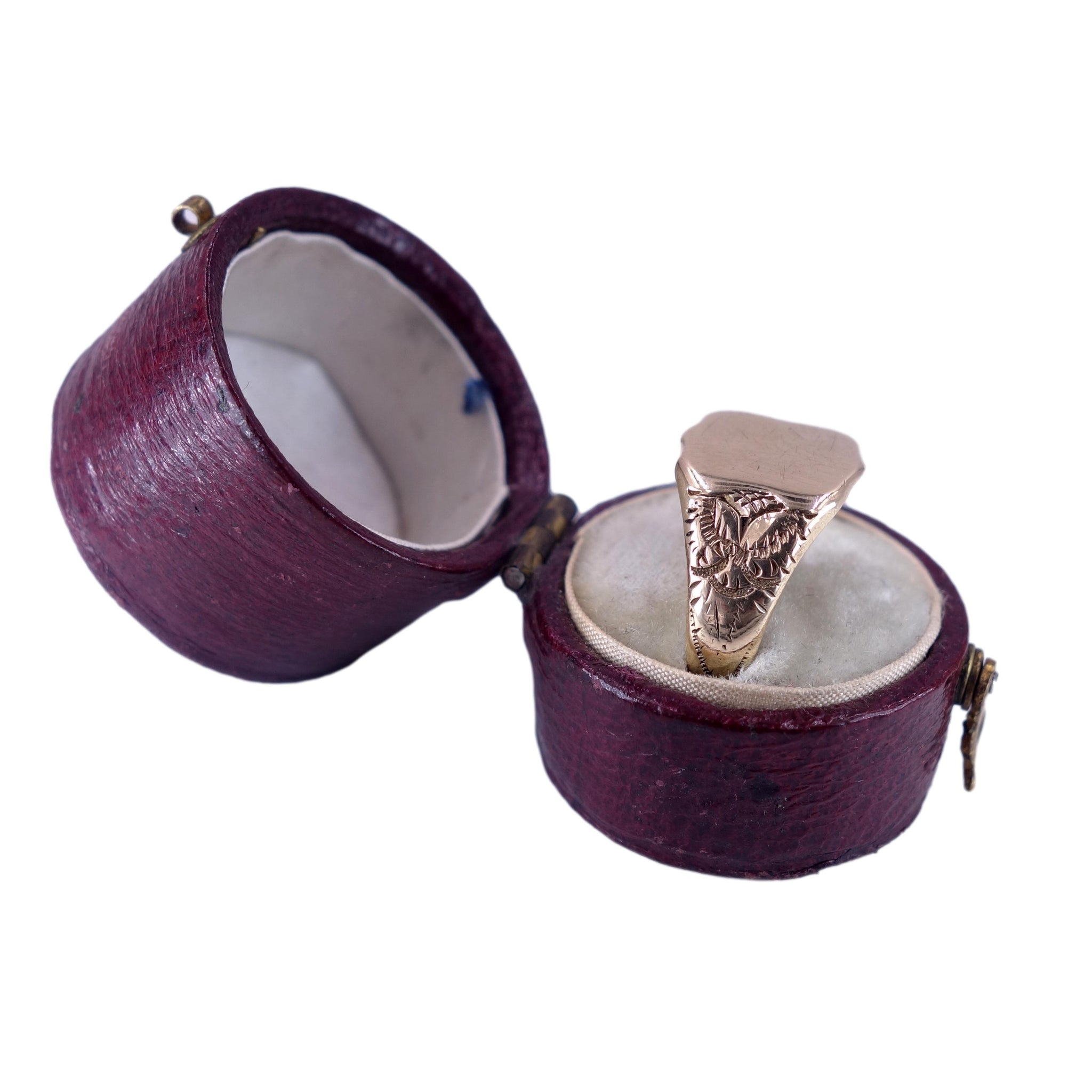 Condition: In very good antique condition.. Some surface scratches to front of the signet. Minor damage to interior of the band near hallmarks. Hallmarks are clear and legible. No evidence of repairs or resizing. Slight discoloration to interior of the band. Additional photos and videos are available upon request. We accept returns for any reason within 14 days. While we do not resize rings we can advise if a ring can be resized.