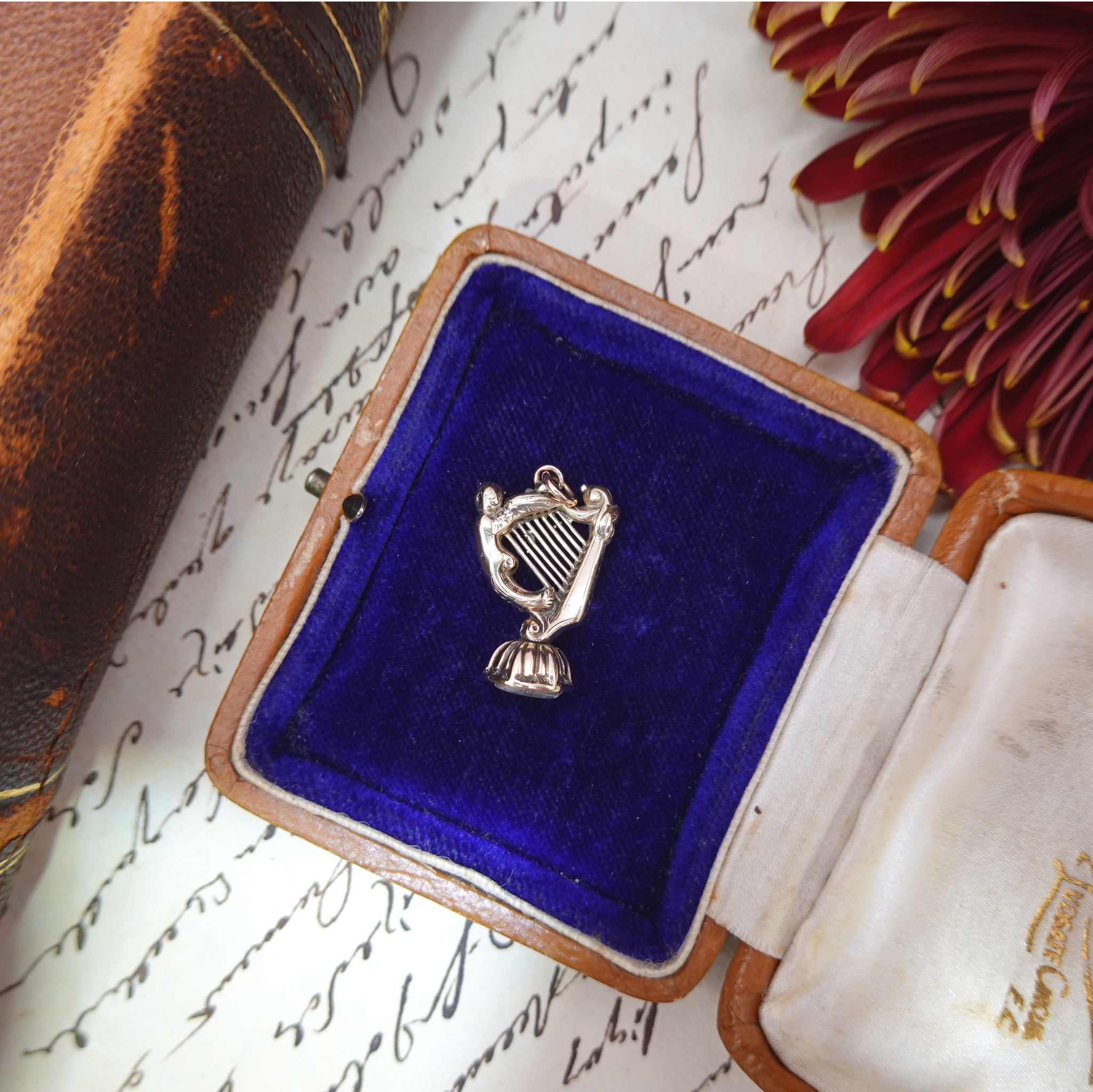 Condition: In good antique condition. Wear commensurate with age with some plating worn. Repair to the strings. Interior cracking to foiled quartz. Additional photos and videos available upon request.
