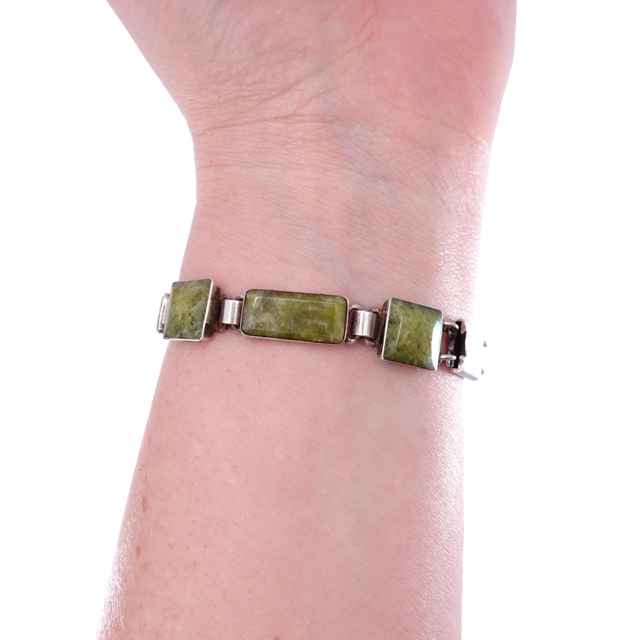 Mid-Century Modern Irish Connemara Marble 925 Silver Bracelet circa 1959