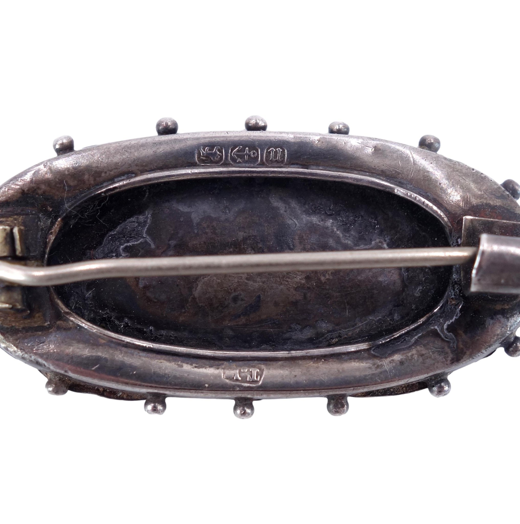 Dimensions: Brooch measures 1.7 inches wide by .85 inches wide.